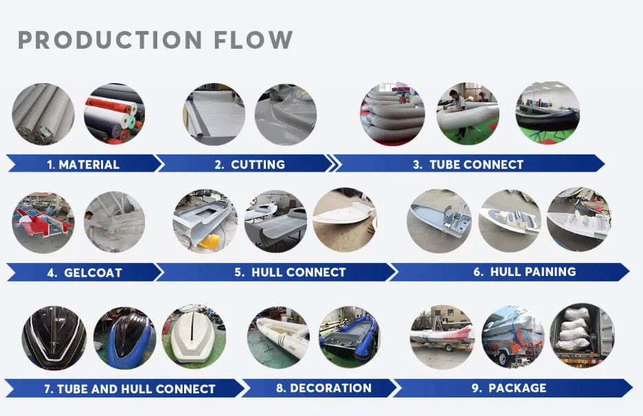 1.Tous nos bateaux semi-rigides en fibre de verre sont fabriqués avec une coque en fibre de verre de haute qualité et un tube en hypalon de qualité marine.